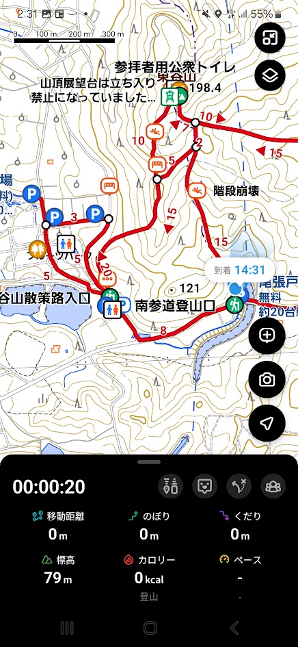 標高198mといっても、普段あまり歩かない人にとっては、それなりに負荷があります。