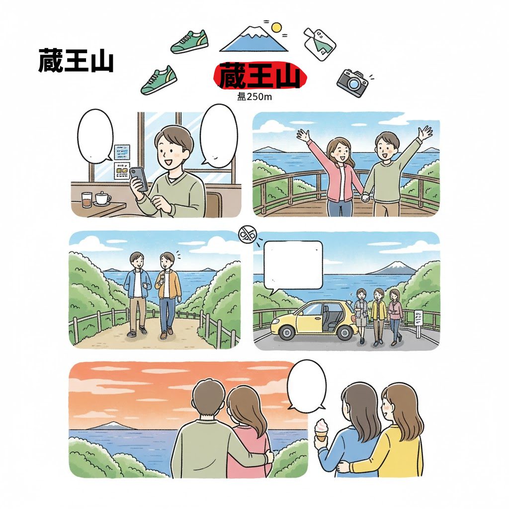 愛知県田原市の蔵王山は、標高約250mの小さな山なのに、山頂からは三河湾と太平洋の両方を見渡せるごほうびビューが待っています。